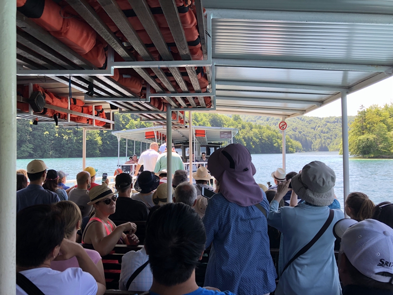 船停在湖中央,無聊拍旁邊的遊客。