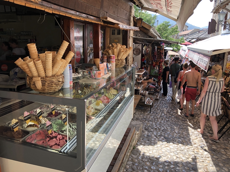 又是到了要上廁所及耗時間內用才買冰淇淋的時刻,由於波士尼亞是比較晚才結束內戰,比較貧窮,當地有些許要錢的小孩,要小心扒手,買冰淇淋有問可不可以付歐元,基本上店家沒提醒,也不找零,要注意。